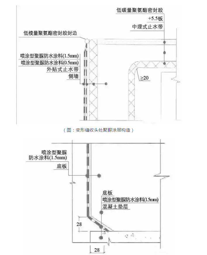 (圖:變形縫處外貼式止水帶聚脲涂層構造)