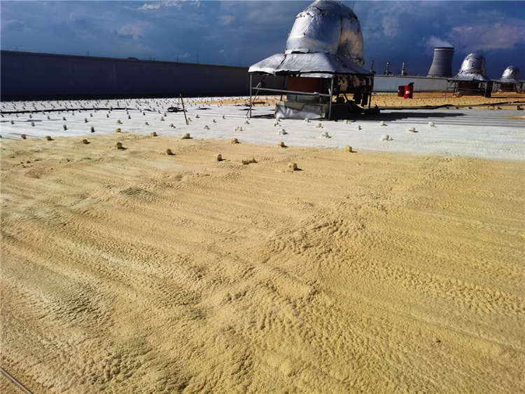 3.發泡聚氨酯噴涂成型速度快,不易噴得非常平整,凹凸不平屬于正常的。用于屋面防水保溫,平整度可放寬,但檐溝、天溝平整度不好,會影響排水流速。因此還需與其他防水材料配合使用。