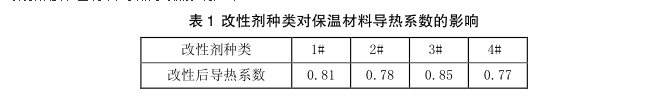 導熱系數是衡量保溫材料物理性能的重要指標,經過實驗得出,加入四種同等重量的改性劑對聚氨酯保溫材料導熱系數影響如表1。